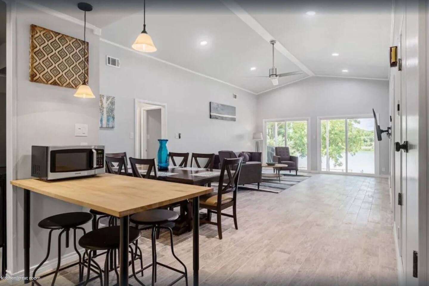 **Please confirm dates you are wanting to stay are available before booking ** Sandbox washed away from rain and replaced with grass. **A rental agreement (See HOUSE RULES) will be sent with our welcome email after you have booked to sign and fill out. The Master Bedroom has a King Bed and en-suite bath with a Smart TV. Bunk Bedroom has 2 twin over full bunk beds and a Smart TV. Bedroom 2 has a queen bed and a connected bathroom into the attached Casita. The Casita is a full 1 bedroom suite with its own entrance or can be accessed through the main house. The Casita has 1 bedroom, shares the bathroom with Bedroom 2, living area with a daybed, Smart TV with complimentary Youtube TV,a kitchenette with a sink, microwave and mini fridge. You can lock the door connecting to bedroom 2 for a fully private experience. Highlights ● Recently Renovated inside and out with recessed bright lighting ● Large Yard ● Smart TVs in Living room, Master, Bunkbed room with complimentary YouTube TV. ● Local property manager to meet all needs ● 4 adult and 1 child complimentary Kayaks w/ life jackets ● Large Lily Pad ● Propane Grill ● Fire Pit ● Open Floor Plan ● Foam mattresses and pillow throughout ● Incredible Views, sunrise to the left and sunset to the right. Bedroom Arrangements ● Sleeps 13 (11 adults + 2 kid ) ● Master Bedroom - King (Sleeps 2) ● Bedroom 2 - Queen (Sleeps 2) ● Bedroom 3 (Bunk) - 2 Twin over Full Bunks (Sleeps 4-6) ● Bedroom 4 (Casita) - Queen, with daybed (Sleeps 3) Guest Access: ● You will have access to the entire home and back yard/dock The Neighborhood: ● Close to the center of Kingsland including a HEB grocery store, and several local restaurants. Other Things to Note: ● No pets allowed at this property! ● Renters are required to be 25 years of age or older