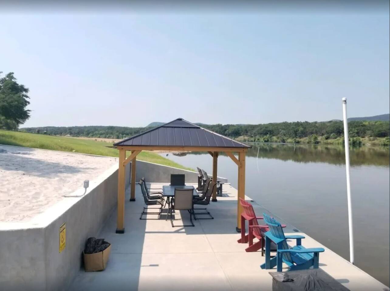 The Sandbox has been removed and replaced by grass. This home will bring back childhood memories. Recently remodeled back dock with fire pit, covered dock. Take one of the 5 complimentary kayaks out on the river, or enjoy the Large Aqua Lily Pad! Plenty of space for everyone to enjoy inside including Smart TVs with complimentary YouTube TV. You can spend the evening enjoying the views of the sunset from the water. VERY children friendly. Shallow water 3-4'